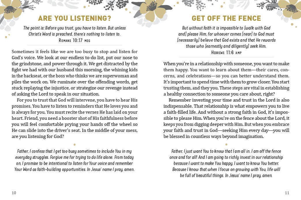 Want to increase your faith? . . .This beautiful large print devotional offers just the encouragement, inspiration, and biblical truth you need.