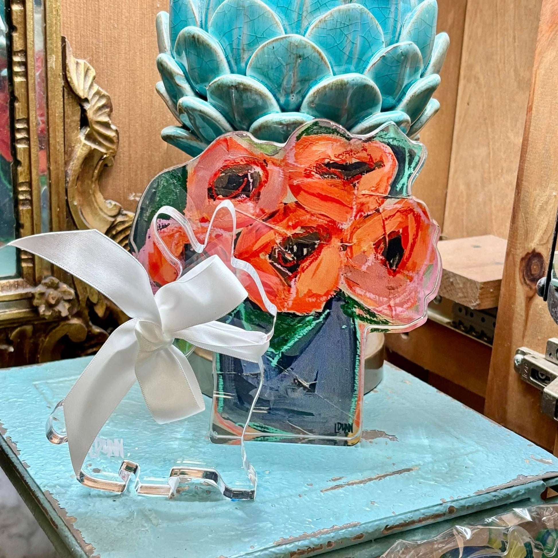 Approximately 6" tall, .75" thick acrylic; features Lauren's signature