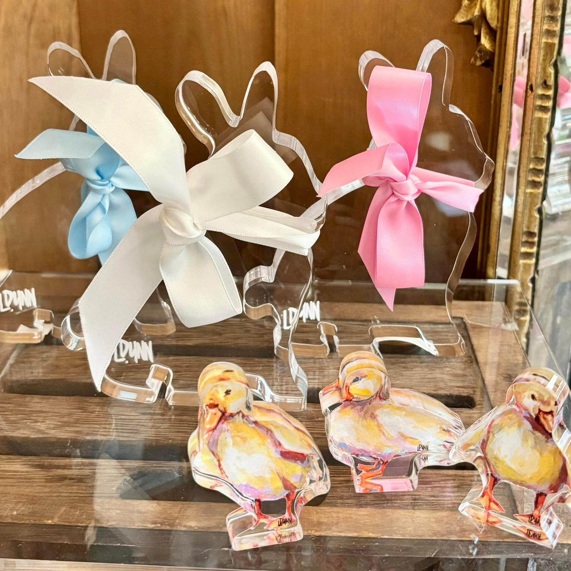 The clear bunny works in any room. Add a ribbon for a nursery or for each holiday.