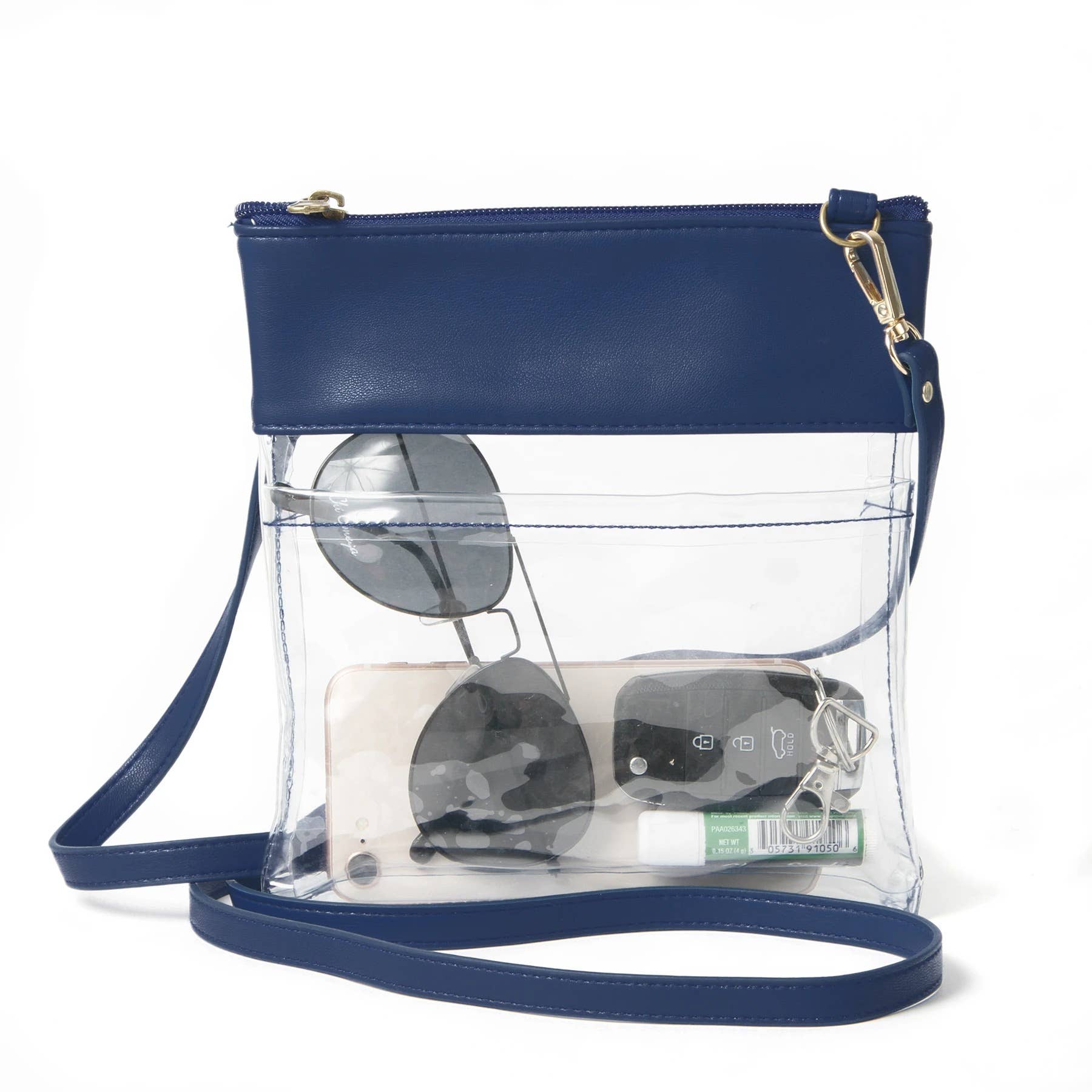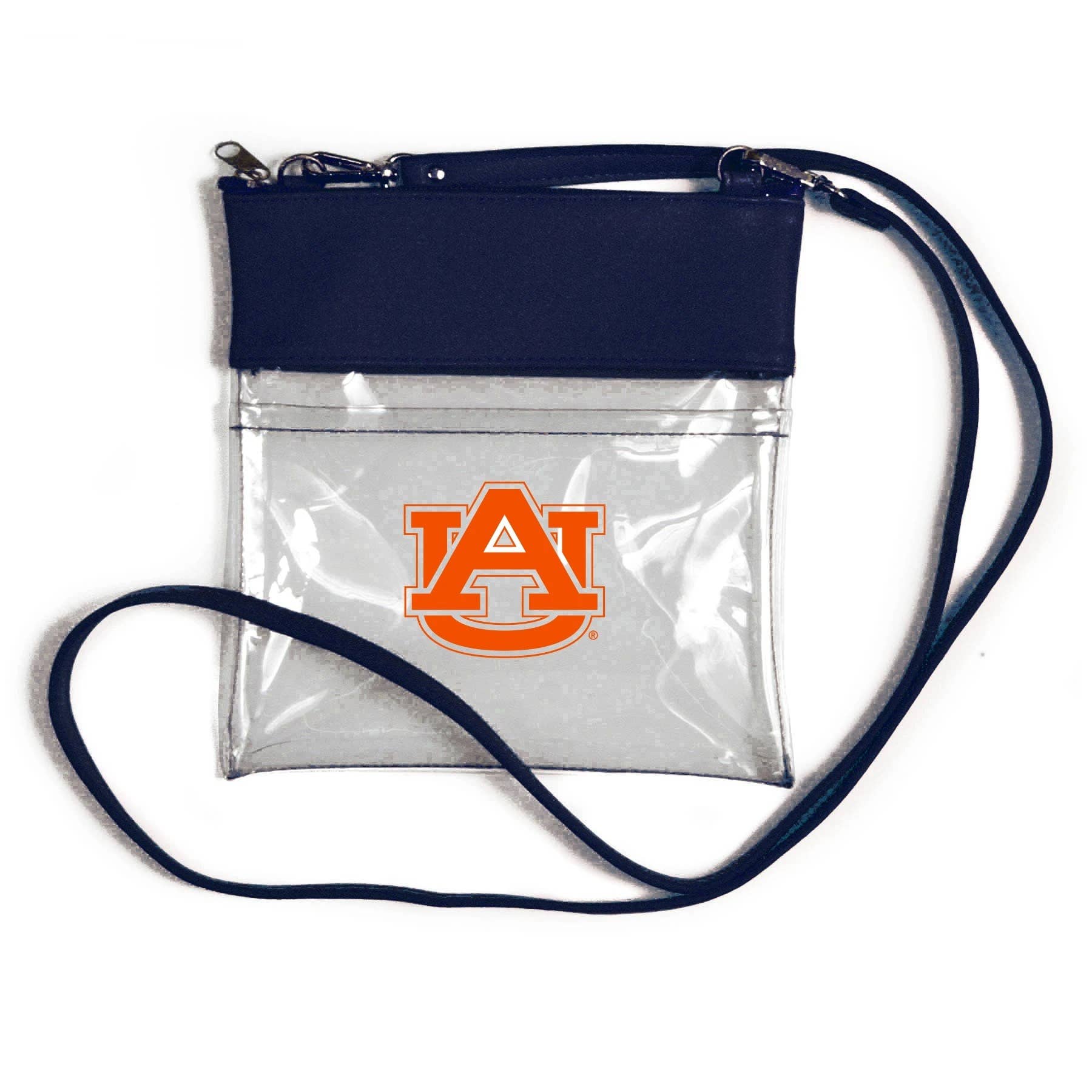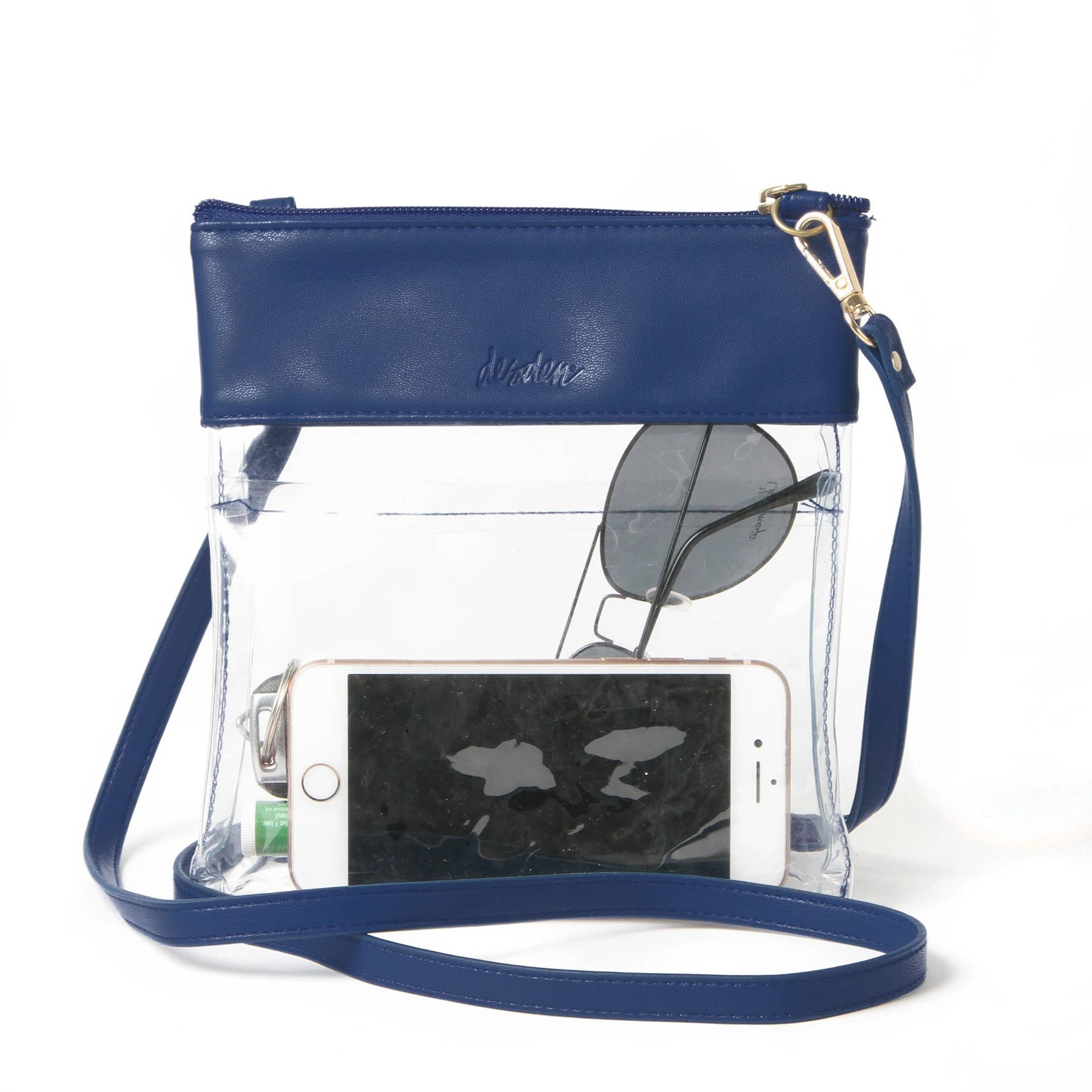 Breeze through security in style with Desden's stadium approved, best-selling crossbody which now comes with vegan leather trim and straps with the collegiate licensed logo on the front pocket. Quality workmanship with a luxurious, buttery vegan leather trim at the top makes this a perfect accessory for carrying your essentials to the game and the post-game night out.