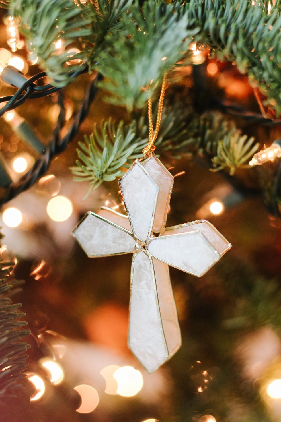 Truly a year-round gift. This 3-dimensional cross is made of Capiz Shell and Brass. Capiz comes from the outer shell of the windowpane oyster and is found in Philippine waters.