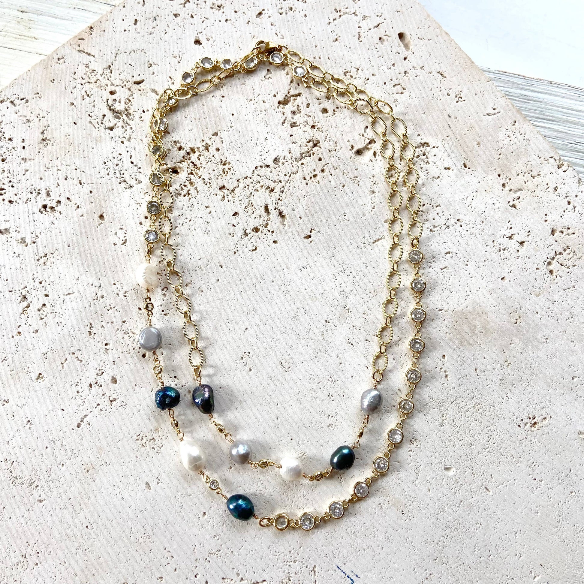 Denim Pearl Crystal Layering Necklace