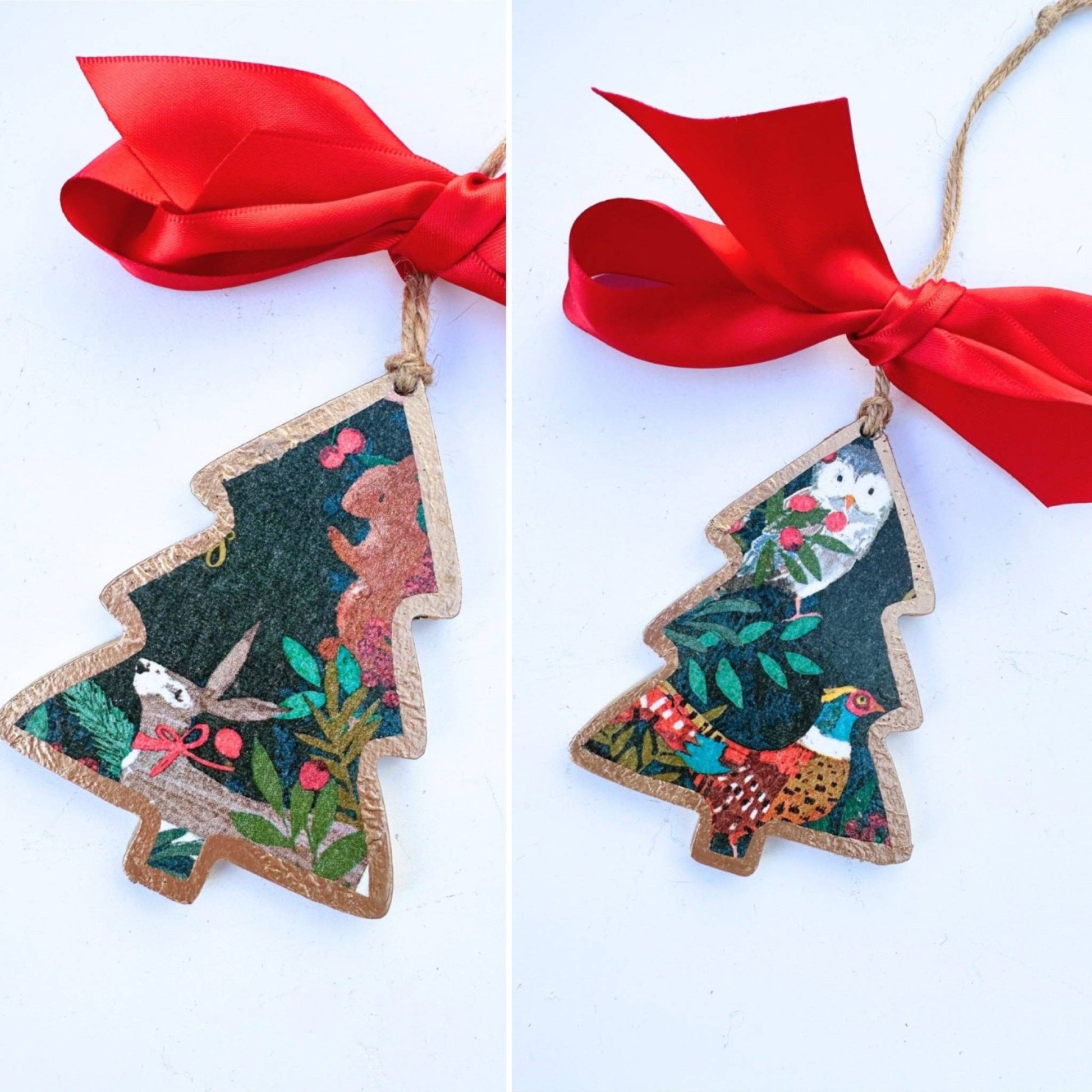 These handmade ornaments are meticulously hand decoupaged and painted and finished with a satin bow.