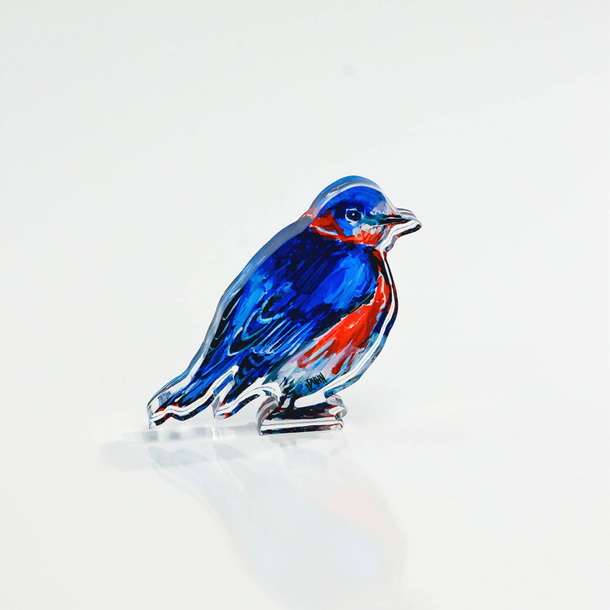 A symbol of happiness and optimism, this sweet bluebird brings a joyful presence to any space. This freestanding acrylic block features Lauren Dunn’s original bluebird artwork, professionally printed to highlight its beautiful color and detail. A thoughtful addition to a shelf, desk, or windowsill — and a meaningful gift for any occasion.