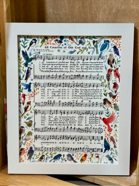 ABOUT THIS PRINT: • printed locally in Virginia on thick textured matte paper • made from an original watercolor painting on top of hymn music • unframed and unmatted • packaged and protected in a cello sleeve with a cardboard insert and ready for gifting!