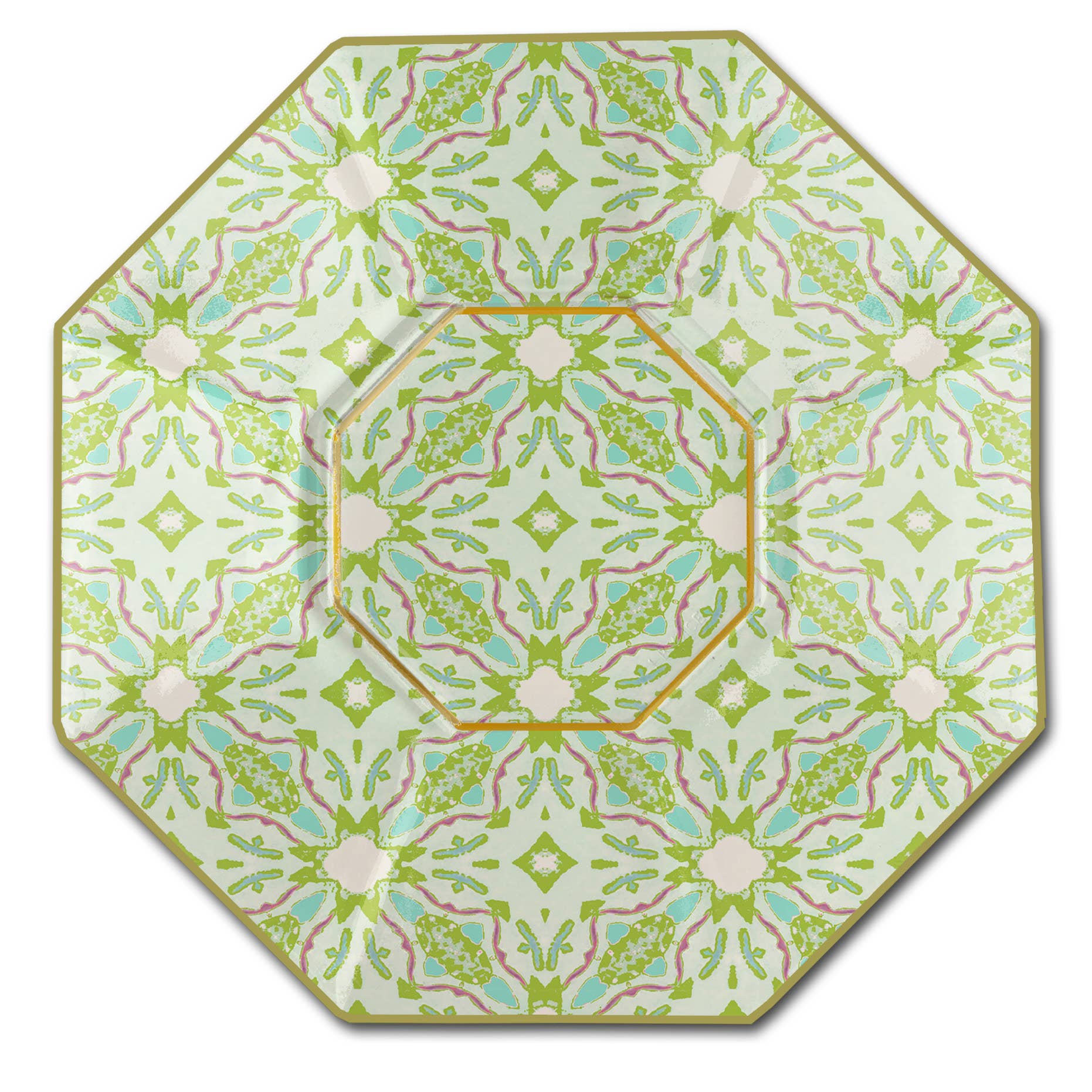 Decoupage glass plates are hand-poured in the USA using high-quality glass. The artwork is hand-cut, and decoupaged onto the glass. The edges are hand-painted. All is done by artisans in Houston, Texas.