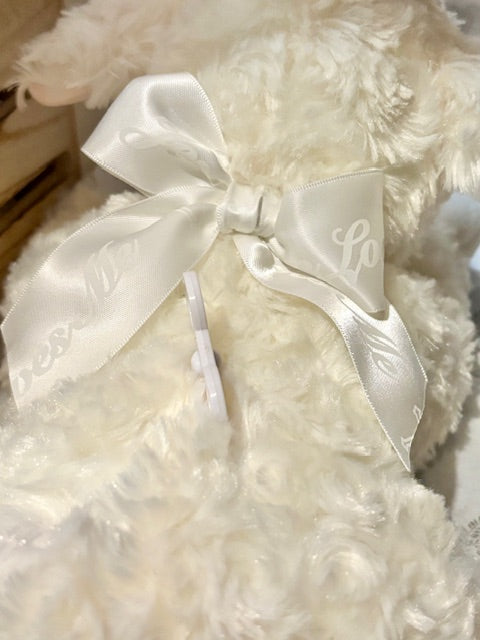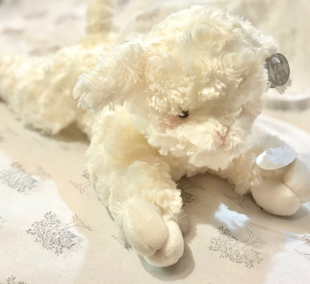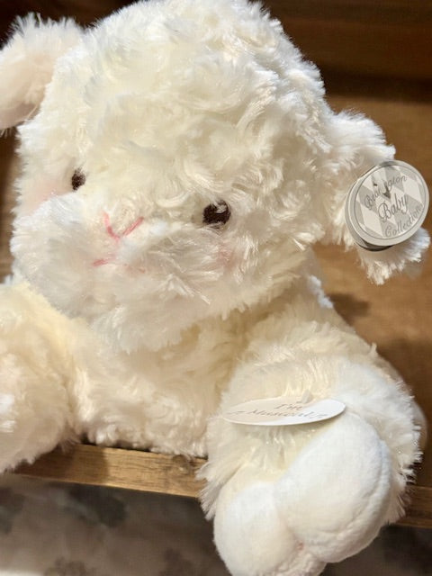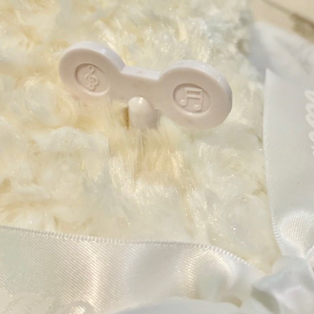Plush lamby; winds up to play the "Jesus Loves Me" tune while his head showly raises. Marked CE... safe for all ages.