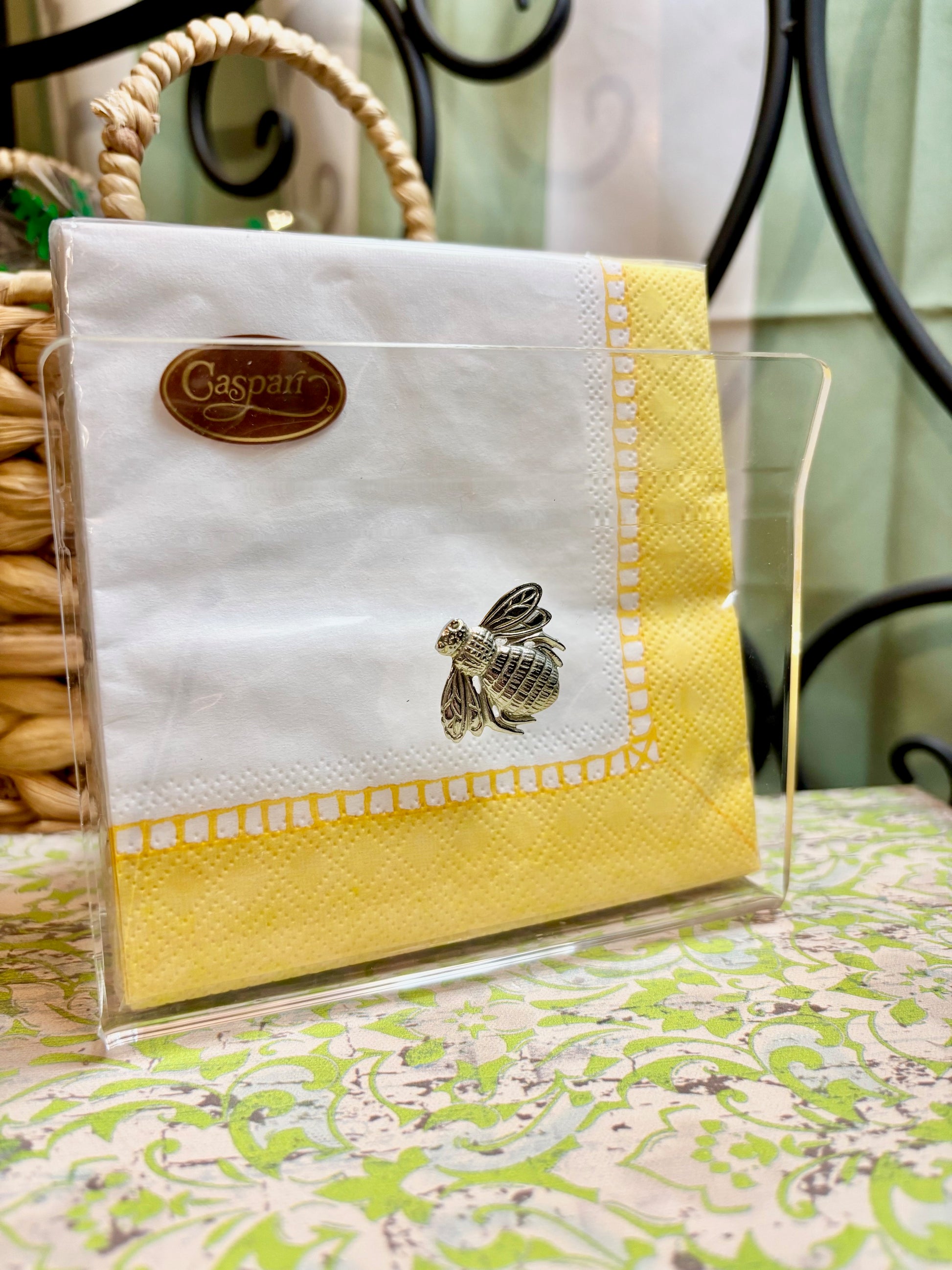 This acrylic napkin stand can hold any size napkins, and it doesn't take up as much space as those square boxes.