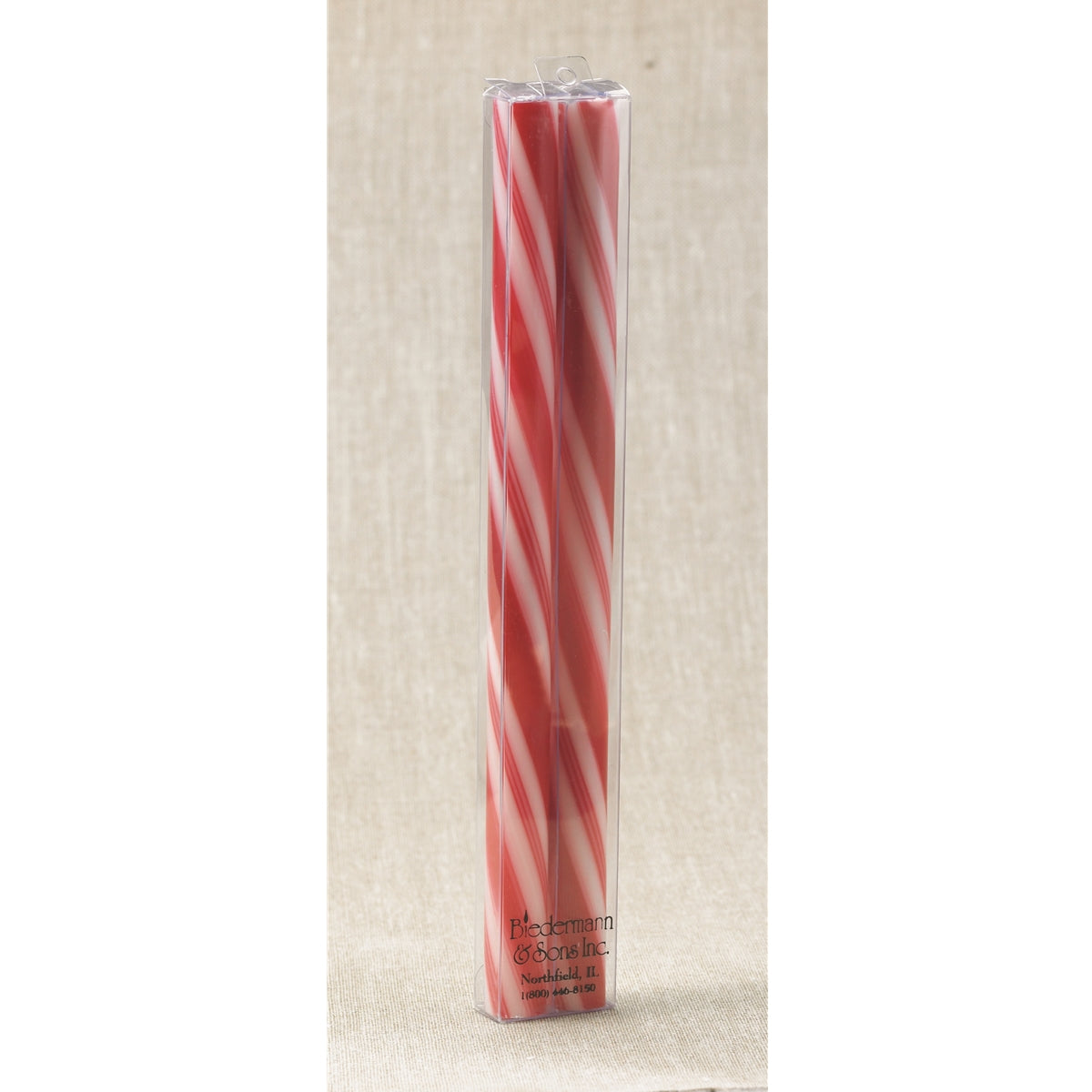 Set of 2 Red Candy Cane 7/8" dia. x 12" tall taper Candles