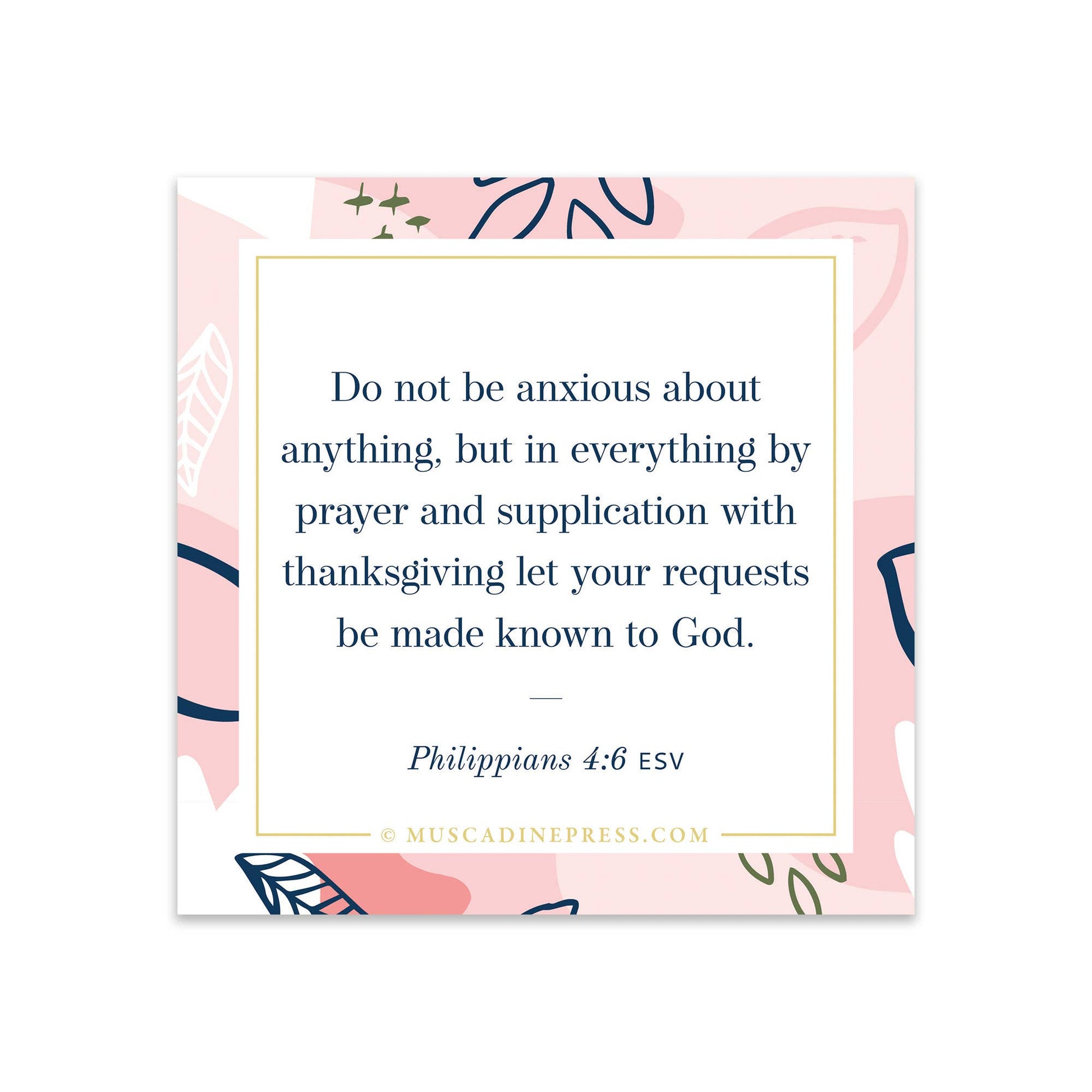 "Do not be anxious about anything, but in everything by prayer and supplication with thanksgiving let your requests be made known to God." Philippians 4:6