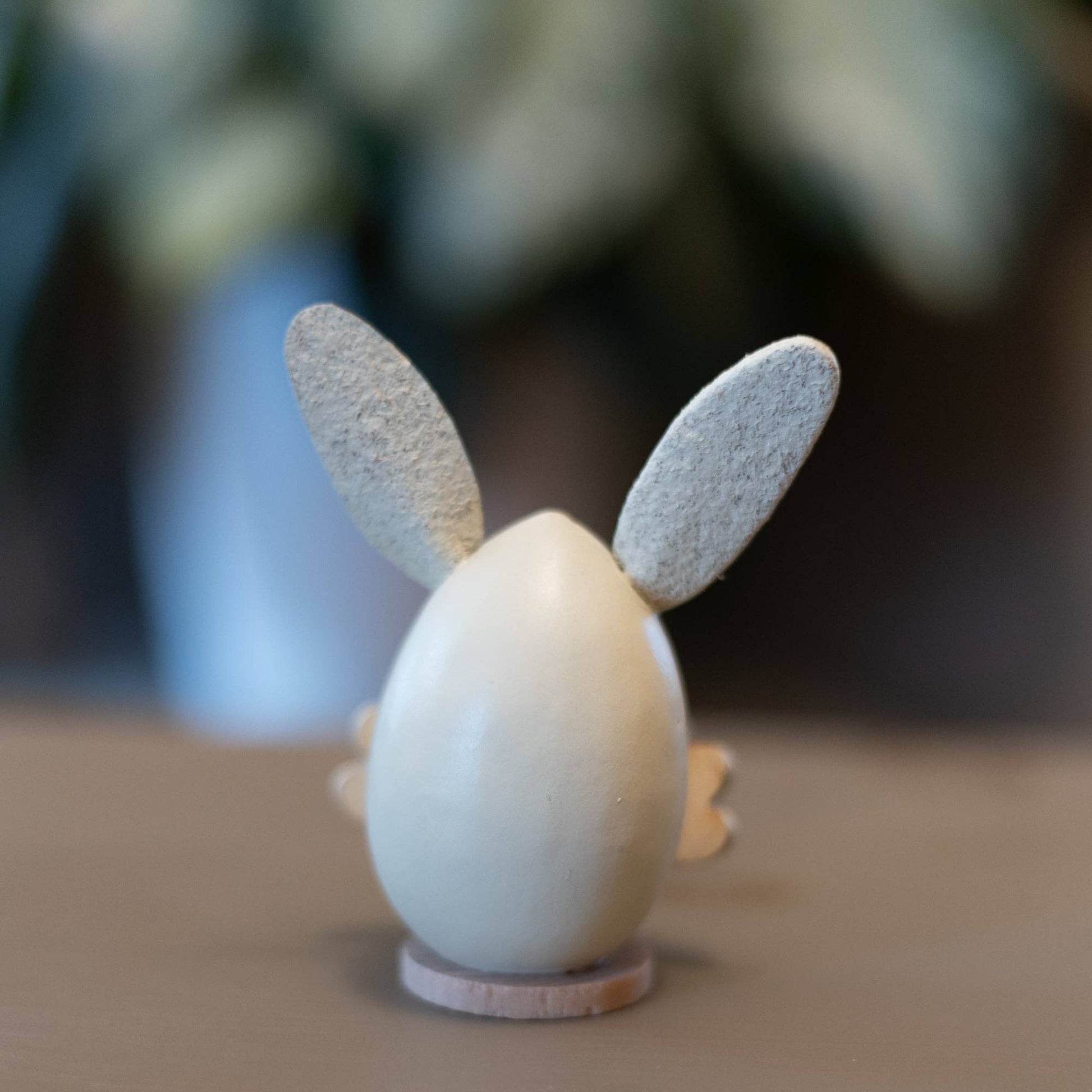 Stella is our white bunny that has adorable wooden feet. This cute bunny is egg shaped and has a pink nose with pink accents on her feet.