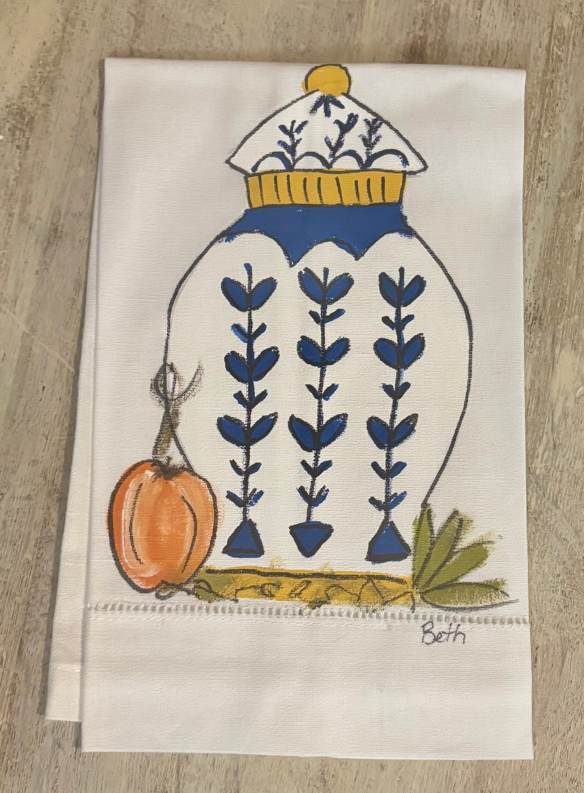 Tea Towel - Handpainted Pumpkin & Ginger Jar