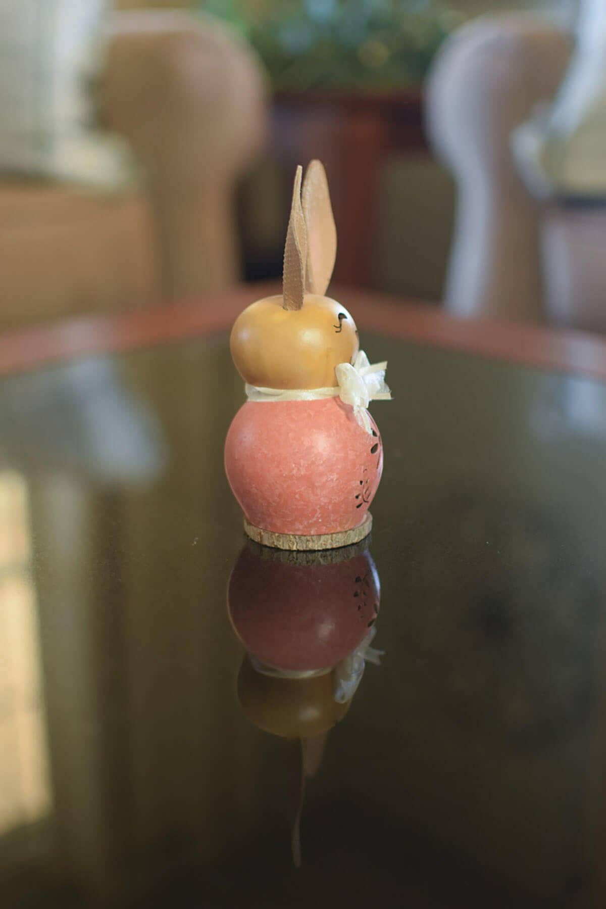 This Willow bunny is sponged orange in color. She has a beautiful flower cutout and an adorable smile.