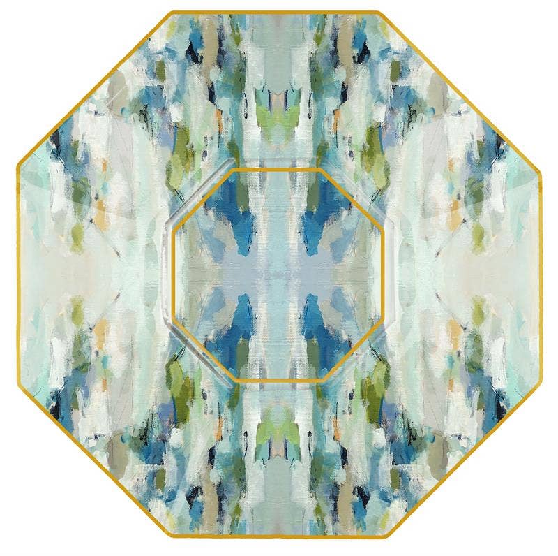 Decoupage glass plates are hand-poured in the USA using high-quality glass. The artwork is hand-cut, and decoupaged onto the glass. The edges are hand-painted. All is done by artisans in Houston, Texas.